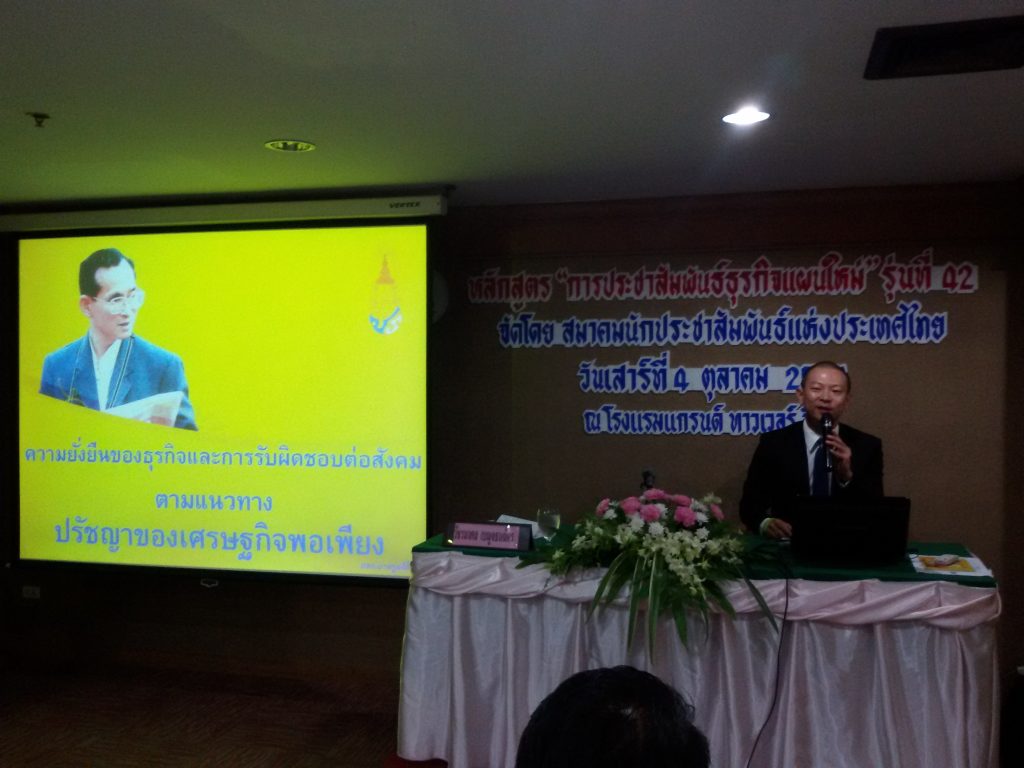 หัวข้อการบรรยาย : ความยั่งยืนของธุรกิจและการรับผิดชอบต่อสังคมตามแนวทางปรัชญาของเศรษฐกิจพอเพียง