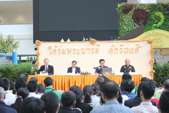 กลุ่มผู้เข้าร่วมฟังการเสวนา : ข้าราชการทุกเหล่าทัพ องค์กรปกครองส่วนท้องถิ่น เครือข่ายเยาวชนสืบสานพระราชดำริ